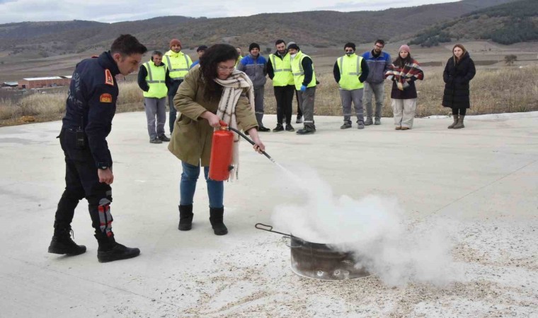 Bozüyük Belediyesi İtfaiye Müdürlüğü’nün deneyimli personelleri tarafından verilen eğitimde personele öncelikle yangın anında ne yapmaları gerektiği ve yangına ilk müdahalenin nasıl yapılacağı, anlatılarak yanma ve yangın, yangın çeşitleri, yangının nedenleri ve alınacak önlemler, yangına müdahale organizasyonu ve yangın güvenlik konuları, yangında kullanılan söndürme cihaz ve ekipmanının kullanılması, gaz ve duman dolu ortamlarda hareket tarzı, tehlikeli kimyasallar ile uygulamada dikkat edilmesi gerekenler hakkında bilgilendirme yapıldı. Yangınlara müdahalelerde yapılan hatalı davranışlar ve su hortumu kullanımı ile yangın söndürme tüpünün de anlatıldığı eğitim çalışmasında personeller yangın söndürme tüpü kullanarak pratik yaptı.