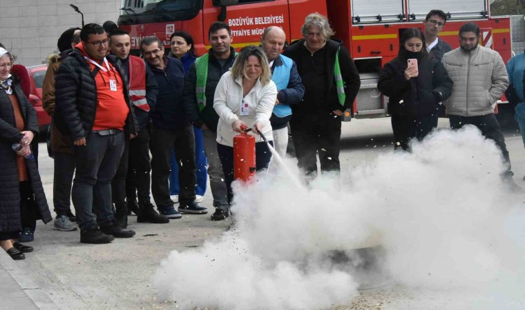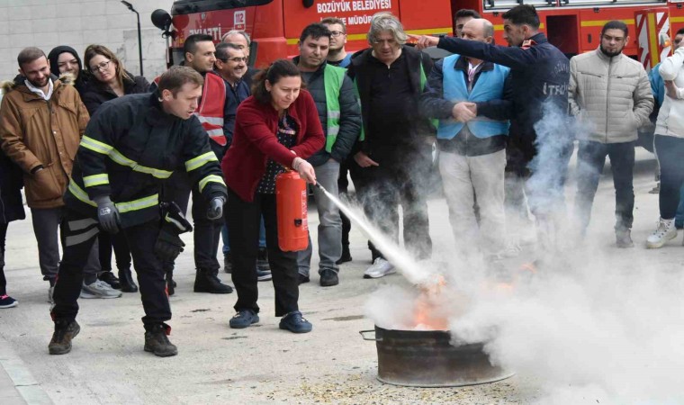 Bozüyük Belediyesi İtfaiye Müdürlüğünün deneyimli personeli tarafından verilen yangın söndürme eğitiminde personele öncelikle yangın anında ne yapmaları gerektiği ve yangına ilk müdahalenin nasıl yapılacağı anlatılarak yanma ve yangın, yangın çeşitleri, yangının nedenleri ve alınacak önlemler, yangına müdahale organizasyonu ve yangın güvenlik konuları, yangında kullanılan söndürme cihaz ve ekipmanının kullanılması, gaz ve duman dolu ortamlarda hareket tarzı ile uygulamada dikkat edilmesi gerekenler hakkında bilgilendirme yapıldı. Yangınlara müdahalelerde yapılan hatalı davranışlar ve su hortumu kullanımı ile yangın söndürme tüpünün de anlatıldığı eğitim çalışmalarında personel yangın söndürme tüpü kullanarak pratik yaptı. Ardından muhtemel bir yangın durumunda hastaların hastane binasından tahliyesini konu alan tatbikat gerçekleştirilerek itfaiye ekipleri dumandan zehirlenme riski bulunan bir hastayı kısa süre içerisinde bina camından kurtardı.