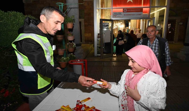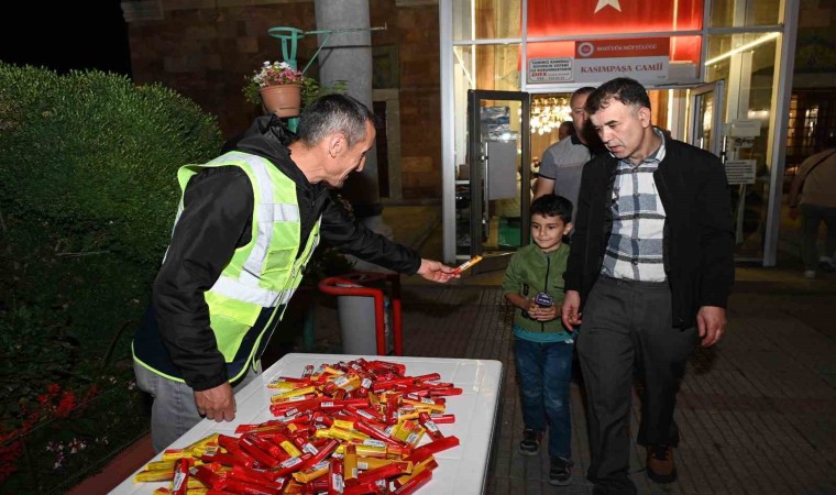 Bozüyük Belediyesi tarafından geleneksel hale gelen kandil ikramları, Mevlid Kandili’nde yapılan şeker ikramı ile devam etti.