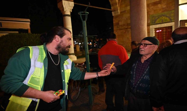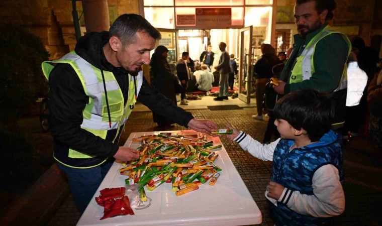 Bozüyük’te Kadir Gecesi’nde camiler vatandaşlarla dolup taşarken Bozüyük Belediyesi tarafından da cemaate mevlit şekeri ikram edildi.
