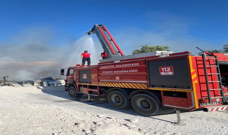 Eskişehir’in İnönü ilçesinde bir palet fabrikasında başlayıp zincir marketin deposuna sıçrayan yangını söndürme çalışmalarına Bozüyük Belediyesine ait itfaiye ekipleri de destek verdi.