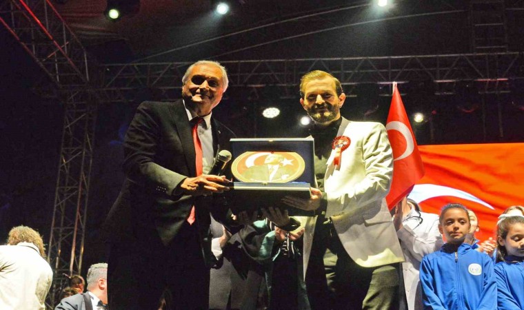 Başkan Bakkalcıoğlu bu muhteşem programın hazırlanmasında emeği geçen herkese teşekkür ederek Atatürk’ü canlandıran Tamer Çakırbay’a çiçek, koronun şefi Murat Küçük’e plaket takdim etti.
