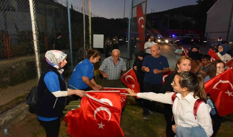Çim sahada devam eden anma programı şehitler için saygı duruşunda bulunulması ve İstiklal Marşı’nın okunması ile başladı. Şehitler için Kuran-ı Kerim okundu, dualar edildi. Günün anlam ve önemini belirten konuşma İlçe Kaymakamı Adem Öztürk tarafından yapıldı. Ardından Cumhurbaşkanlığı tarafından hazırlanan 15 Temmuz Belgeseli izlendi. Programın devamında halk oyunları ekibinin Kılıç Kalkan gösterisi ve Mehteran Takımı gösterilerini sundu. Programda ayrıca ’15 Temmuz Şehitleri’ adlı şiir okunarak, halk oyunları ekibinin Ege Yöresi Efe Oyunu gösterisi, Otuz Kuş adlı şiirin okunması, İlahi Grubunun dinletisi, Semazen gösterisi ve Halk Oyunları ekibinin Seymen gösterisi yer aldı. Programda son olarak 15 Temmuz belgeseli ve ardından Cumhurbaşkanı Recep Tayyip Erdoğan’ın konuşması izlendi.
