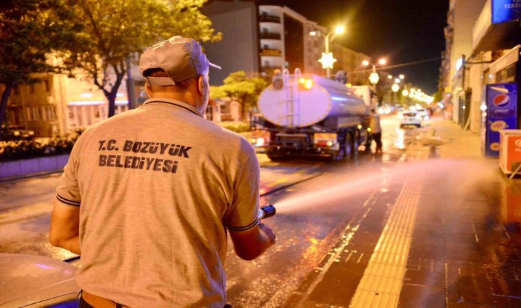 Bozüyük Belediyesi Temizlik İşleri Müdürlüğü ekipleri tarafından ilçenin en işlek caddesi olan İsmet İnönü Caddesi ve kaldırımları tazyikli suyla yıkanarak temizlendi.