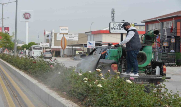 Bozüyük’te yeşil alanlarda rengârenk açan ve ilçeye güzellik katan güllerin sağlıklı kalmaları amacıyla yapılan ilaçlama çalışmaları devam ediyor.