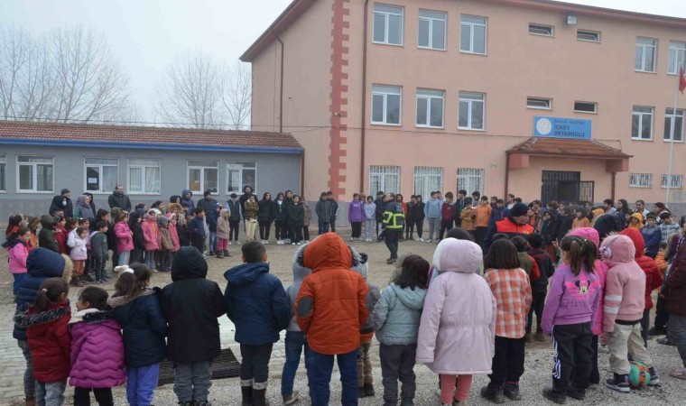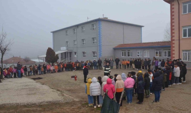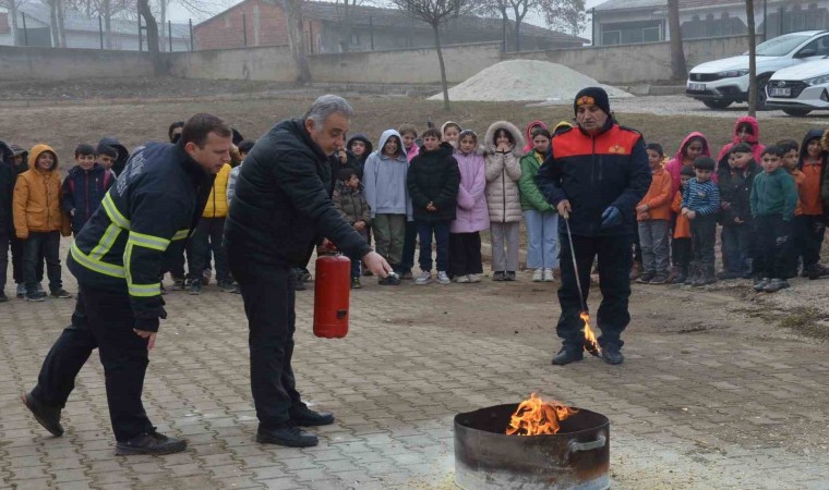 Okul bahçesinde yapılan yangın eğitimine okul öğrencileri ile öğretmenler katıldı. Eğitim çalışmasında öğrencilere yangına karşı alınacak önlemler, yangın çeşitleri ve muhtemel yangın durumunda neler yapılması gerektiği gibi bilgilerin yanı sıra yangın tüpü ve nasıl kullanılması gerektiği anlatılarak kullanımı uygulamalı olarak gösterildi. İtfaiye personelini büyük bir dikkatle dinleyen öğrenciler, yangın eğitiminin sonunda yangın tüpünü kullanarak pratik yaptı.