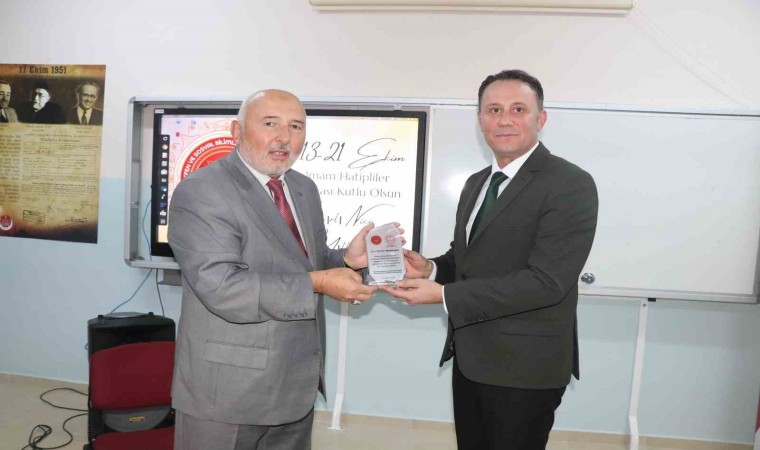 Konferansın sonunda, İlçe Milli Eğitim Müdürü Servet Çetinkaya tarafından Prof. Dr. Mustafa Baş’a plaket takdim edildi.