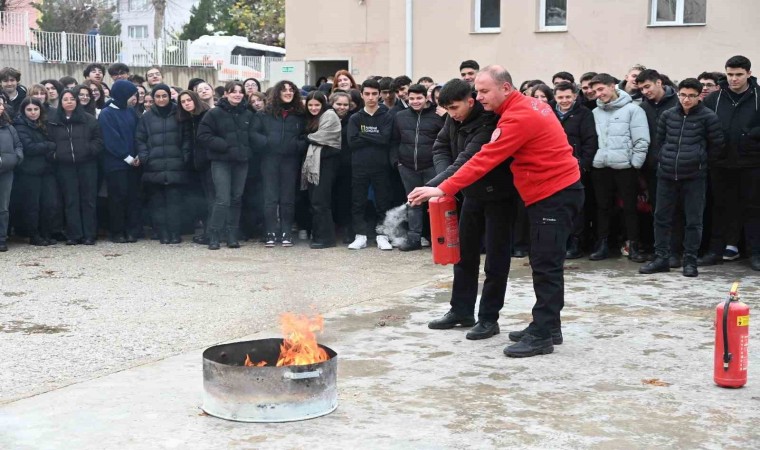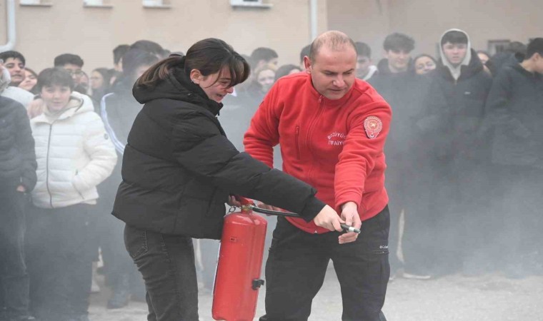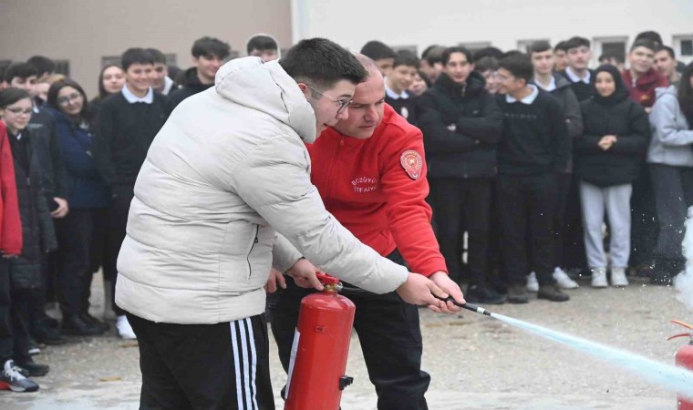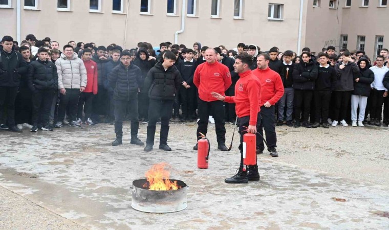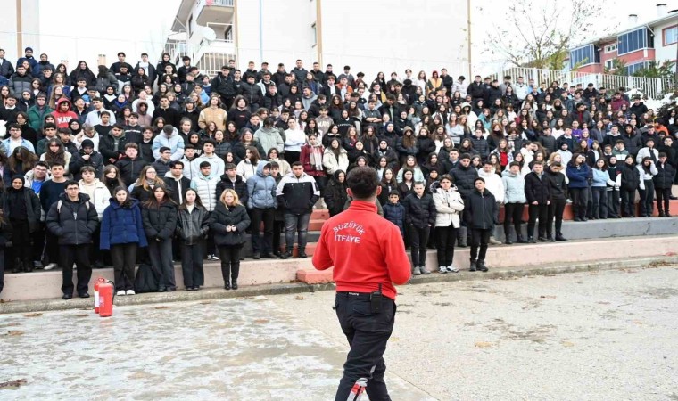 Bozüyük Belediyesi İtfaiye Müdürlüğü’nde görevli personel tarafından Kumral Abdal Anadolu Lisesi öğrencilerine uygulamalı yangın eğitimi verildi.