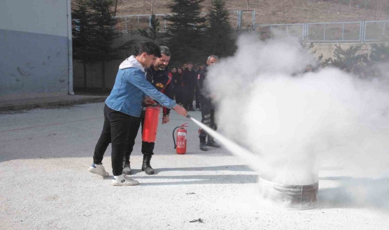 Bozüyük Belediyesi İtfaiye Müdürlüğü’nde görevli personel tarafından Selahattin Şeker Mesleki ve Teknik Anadolu Lisesi ile Zehra Ulusay Mesleki ve Teknik Anadolu Lisesi öğrencilerine uygulamalı yangın eğitimi verildi.