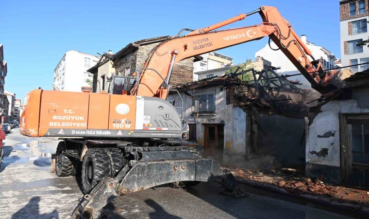 Bozüyük’te metruk bir binada çıkan yangın sonrasında tamamen harabeye dönen yapının yıkımı yapıldı.