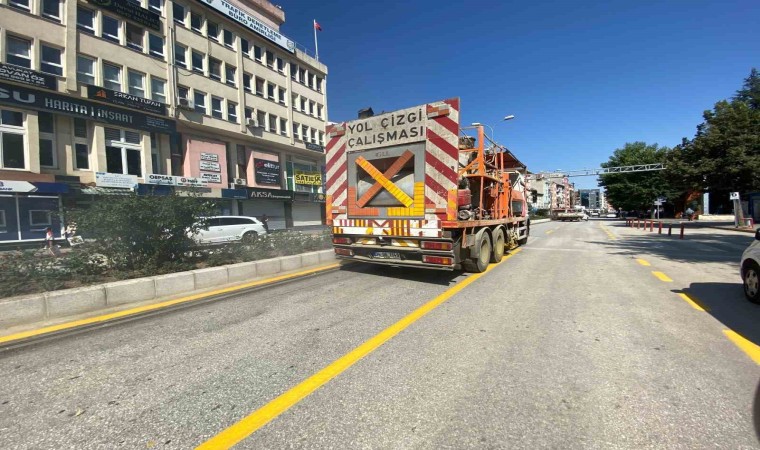 Bozüyük Belediyesi Raylı Sistem Nostaljik Tramvay projesinin ray döşeme çalışmalarının tamamlanmasının ardından ulaşımın can damarı niteliğinde olan ana cadde üzerindeki araç yolu çizgileri sarı renge boyanarak yenilendi.
