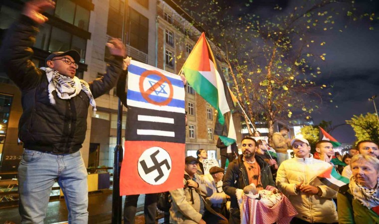 Ellerinde Filistin bayrakları bulunan göstericiler, sık sık, "Katil İsrail" ve "Filistin’e özgürlük" sloganları attı.