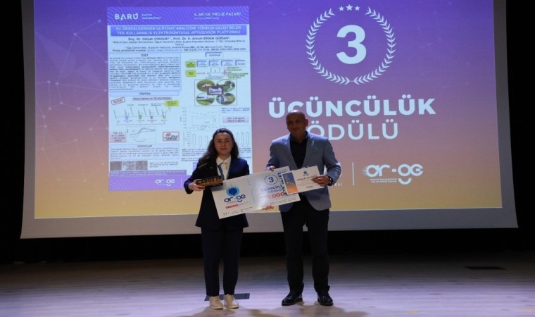 Başvuru sahipliğini Bilecik Şeyh Edebali Üniversitesi’nin üstlendiği, 2023/002644 numaralı ve ’Su Örneklerinden Glifosat Analizine Yönelik Tek Kullanımlık Elektrokimyasal Aptasensör Platformu Geliştirilmesi’ başlıklı patent çalışması Bartın Üniversitesi’nin düzenlediği ’6. Ar-Ge Proje Pazarı’ yarışmasında üçüncülük ödülünü almaya hak kazandı.