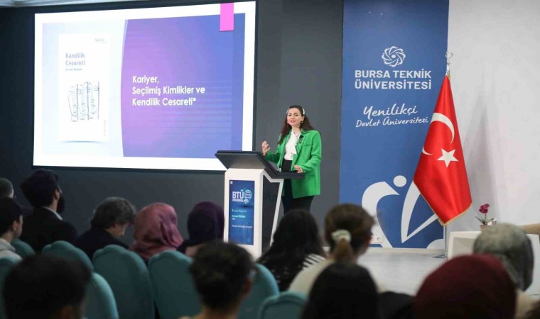 Alanında uzman isimleri her çarşamba günü Bursa Teknik Üniversitesi (BTÜ) öğrencileriyle buluşturan BTÜ Konuşmaları’nın 3’ncü sezon 24’ncü bölüm konuğu, Yazar Zeynep Merdan oldu. Mimar Sinan YerleşkesiTurkuaz Salon’da gerçekleştirilen programa; BTÜ Rektörü Prof. Dr. Naci Çağlar, Genel Sekreter Selim Uzun, akademisyenler ve öğrenciler de katıldı. “Kariyer ve Kendilik Cesareti” başlıklı konuşmasıyla Merdan;gerçek benliği bulmak, hakiki arzu, varoluş imkânları gibi konulardan bahsetti. Felsefe, psikoloji, sosyoloji ve edebiyatın dünyaca ünlü isimlerinin hayat hikâyelerinden ve benliğe bakış açısından örnekler veren Merdan, insanın kimliğini seçmesinin ve gerçek benliğini bulmasının çok önemli olduğunu vurguladı. Benliği tanımlamanın çok farklı boyutları olduğunu kaydeden Yazar Merdan, “Kimdir ben sorusunu sorarken bunun, felsefik, sosyolojik, psikolojik ve edebi yönü vardır. Biz, bize verili olan pek çok şeyi kendimiz seçmedik, cinsiyet, din, dil, ırk Bunların hiçbiri ben değildir, sadece benimizden birer parçadır. İnsanın ideolojik görüşü ya da doğduğu yer ile tanımlanması, onun kimliğini