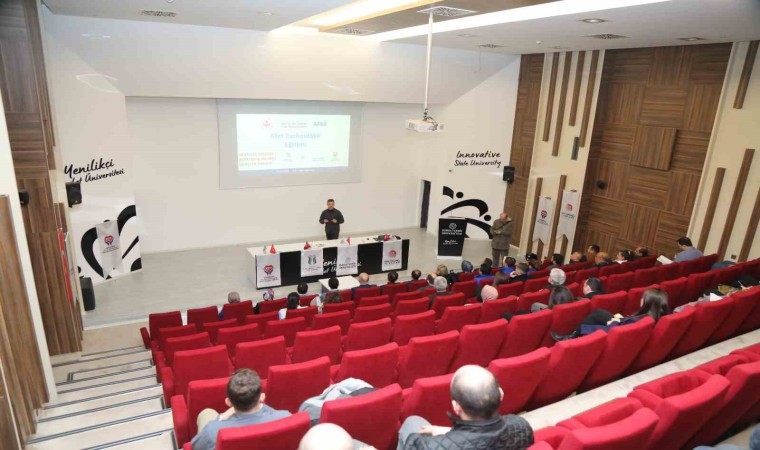 İçişleri Bakanlığı Sivil Toplumla İlişkiler Genel Müdürlüğü tarafından desteklenen, Bursa Teknik Üniversitesi, Sakarya Uygulamalı Bilimler Üniversitesi (SUBÜ) ve Anadolu Kültür Eğitim Spor Yardımlaşma Derneği (AKES-DER) ile birlikte yürütülen “Afetlere Dirençli Afetlerde Bilinçli Gençler” projesi kapsamında eğitim düzenlendi. Mimar Sinan Yerleşkesi Erguvan Salon’da düzenlenen eğitime, BTÜ Rektör Yardımcıları Prof. Dr. Beyhan Bayhan, Prof. Dr. Barış Tamer Tonguç, paydaşlar akademisyenler ile idari personel katıldı. Programın açılış konuşmasını yapan Prof. Dr. Beyhan Bayhan, “Türkiye, başta deprem olmak üzere sel, orman yangını gibi afetlerden son dönemlerde ziyadesiyle etkilendi. Bu çerçevede afetlere dirençli, afetlerde bilgili gençlerin yetişmesinin ve bu gençlerin sayısının artmasının toplumun afetlere karşı direncini artıracağına ve afet sonrası iyileşmeyi hızlandıracağına inanıyorum. Bu proje çerçevesinde eğitimlere katılan gençlerimizin, afet sırasında nasıl davranmaları ve etkili bir şekilde nasıl müdahale edilmesi gerektiğini öğreneceklerine inanıyorum” dedi.