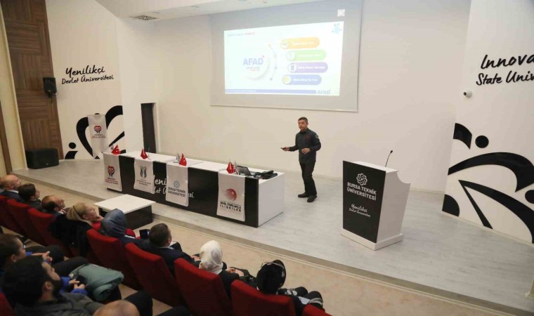 Bursa Teknik Üniversitesinde (BTÜ) ’Afet Farkındalık Eğitimi’ verildi. Programda; afet sırası ve sonrasında doğru davranış şekilleri, afetlerde psikolojik ilk yardım, saha deneyimleri gibi konu başlıkları aktarıldı.