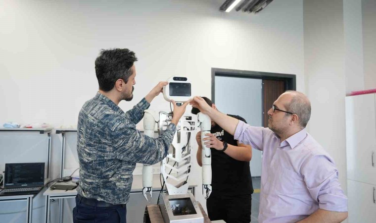 Bursa Teknik Üniversitesi Robot Teknolojileri ve Akıllı Sistemler Uygulama ve Araştırma Merkezi’nde yapay zekâ destekli insansı sosyal robot projesine imza atıldı. Mekatronik Mühendisliği Bölümü’nden proje yürütücüsü Dr. Öğretim Üyesi Nurettin Gökhan Adar ve yardımcı araştırmacı Dr. Öğretim Üyesi Mustafa Özden tarafından geliştirilen robotun, tasarım, imalat ve yazılım iş paketleri için Mekatronik, Elektrik-Elektronik ve Makine Mühendisliği bölümlerinden lisans ve yüksek lisans öğrencilerinden bir ekip oluşturuldu. Geçtiğimiz şubat ayında çalışmalarına başlanan robot, Türkiye’de akademik alanda bir ilk olma özelliği taşıyor. Yapay zekâ destekli sosyal mobil insansı robot, Yükseköğretim Kurulu (YÖK) Başkanı Prof. Dr. Erol Özvar’a da tanıtıldı. İnsanlarla etkileşime girme kabiliyetine sahip olan robotun tasarımı, imalatı ve yazılımının tamamı BTÜ bünyesinde gerçekleştiriliyor.