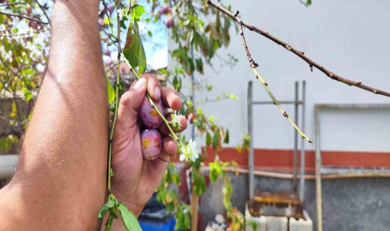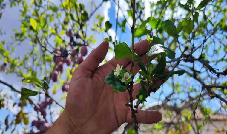 Ağacın bir tarafında çiçek bir tarafında meyvenin olduğunu söyleyen Şeker, “Bahçemde yetiştirdiğim bu ağaç ağustos ayında yaprağını döktü. Eylülde tekrar çiçek açtı. Ağacın bir tarafında çiçek bir tarafında meyve var. İnşallah sonumuz iyi olur. Ben bu durumu iyi karşılamıyorum. Çünkü iklimler değişti yağışlar azaldı. Ağaçlar bile bize geleceğin iyi olmadığını bize bildiriyor” şeklinde konuştu.