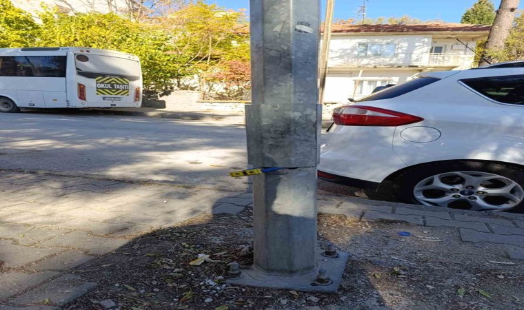 Bilecik’te bir kaldırımın üzerine ortasına dikilen aydınlatma direğinden dışarı çıkan kablolar tehlike saçıyor.