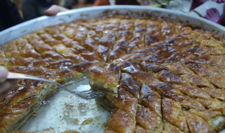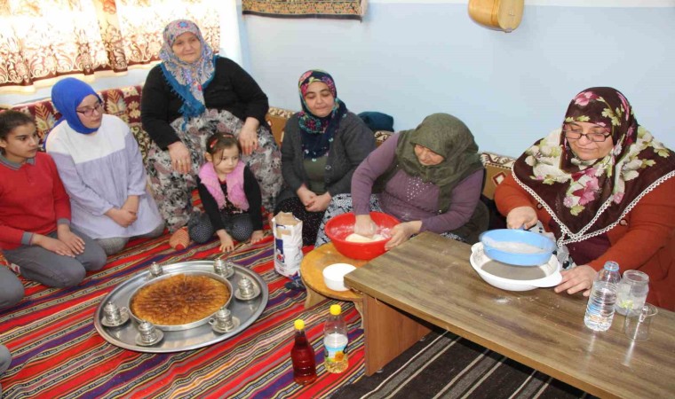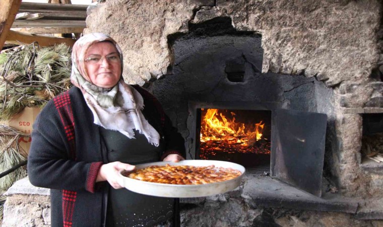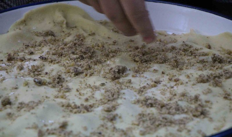 Amasya’nın Aydınca köyünde el emeğiyle hazırlanan tatlı türü baklavanın yapımında “kül” kullanılıyor.