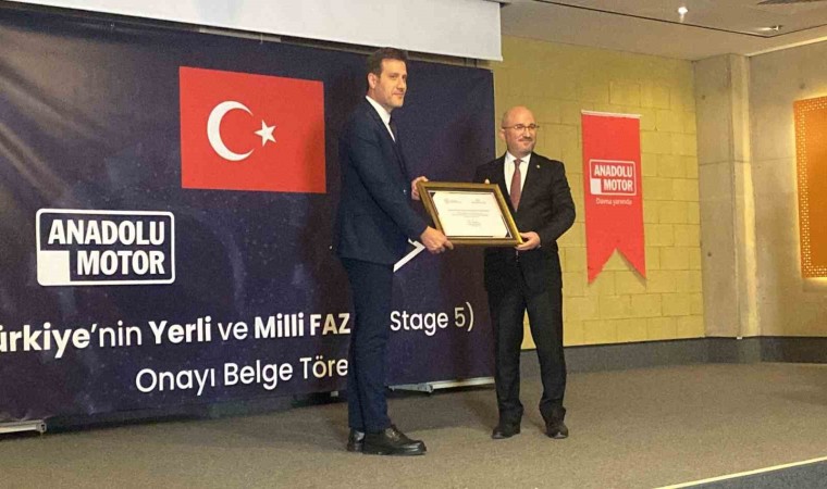 Gerekli test çalışmalarının hem TSE laboratuvarında Hem de Anadolu Motor’un test platformlarında titizlikle yapıldığına dikkat çeken Başkan Şahin, "Olumlu netice aldıktan sonra Anadolu Motor Faz 5 onayını almaya hak kazandı. Bu, sürdürülebilir bir çevrenin oluşturulabilmesi adına, gelecekte çocuklarımızın yaşanabilir bir doğada olabilmeleri adına büyük önem arz ediyor. Burada özellikle yerli ve milli tasarımı gerçekleştiren, bu Faz 5 motorun karbon salınımlarını gerekli standartlara uygun hale getiren bütün teknik ekibi tebrik ediyorum. Bugün de bu çalışmanın neticesi olarak TSE olarak tip onayını vermek için burada belge töreni düzenledik. Bu aslında bu kategorideki ilk yerli ve milli ürünün belgesi anlamına geliyor. Ülkemizde bu alanda daha büyük kilovatlı motorların da Faz 5 tip çalışmaları devam ediyor. İnşallah yakın bir zamanda sonuçlandığı zaman daha çeşitli motorların da tip onaylarını vermeye başlayacağız" diye konuştu.