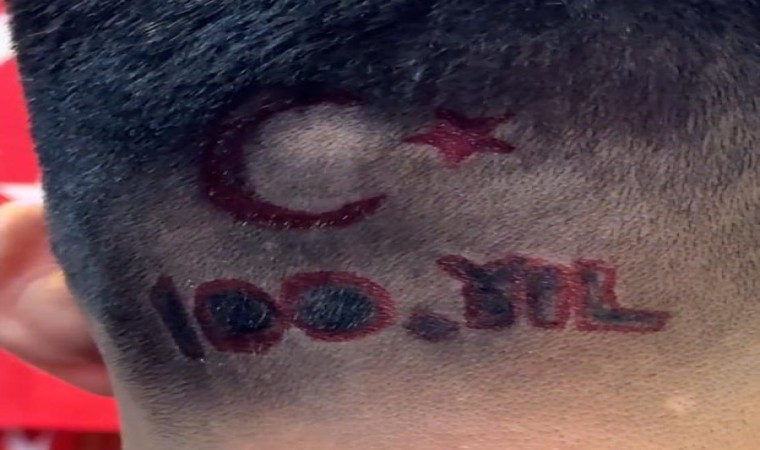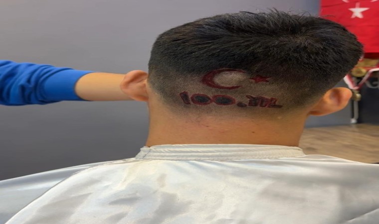 Bolu’da bir berber, saç tıraşına gelen müşterisinin kafasına Cumhuriyetin 100. yıl dönümü nedeniyle "100. yıl" simgesini kazıdı.