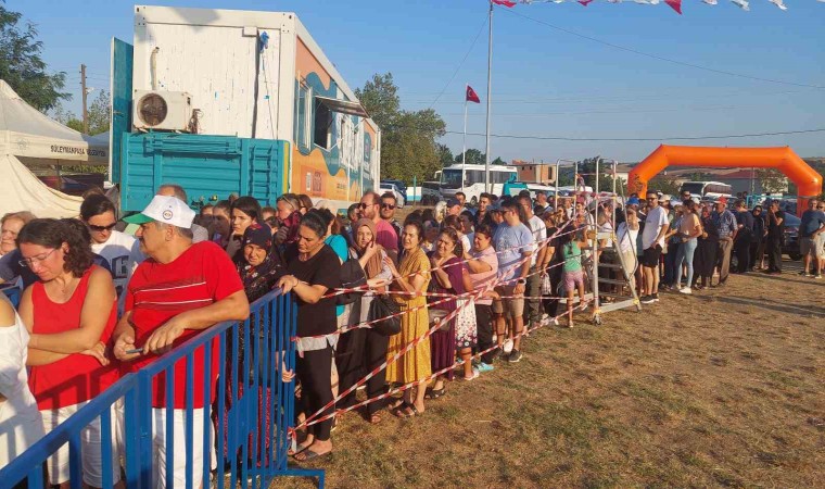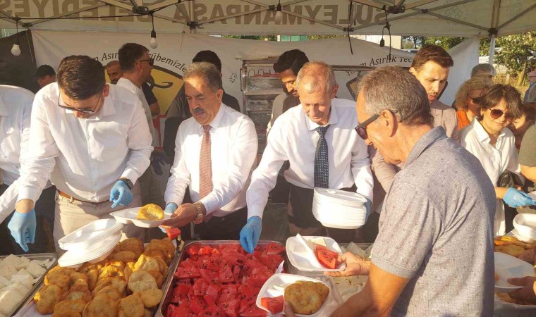 Tekirdağ’da Süleymanpaşa Belediyesi tarafından düzenlenen Ferhadanlı Karpuz Şenliği’nde karpuz, peynir ve lokma ikramında uzun kuyruklar oluştu.