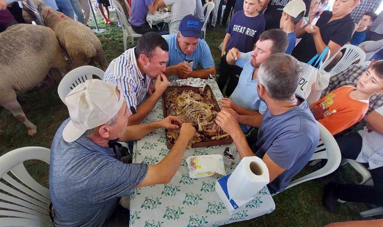 Tekirdağ’ın Süleymanpaşa ilçesinde düzenlenen oğlak yeme yarışması renkli görüntülere sahne oldu.