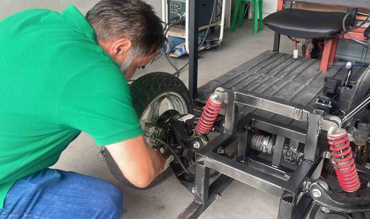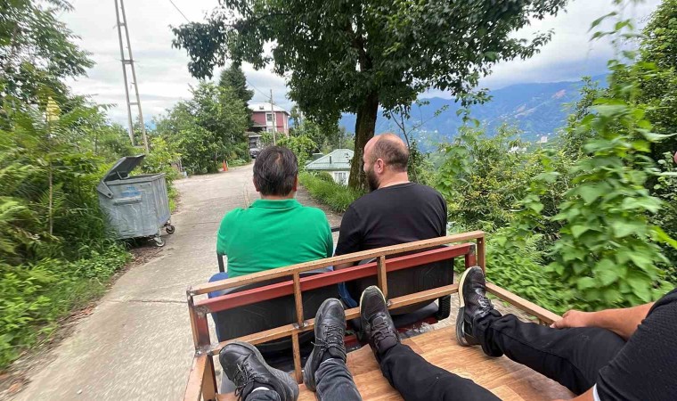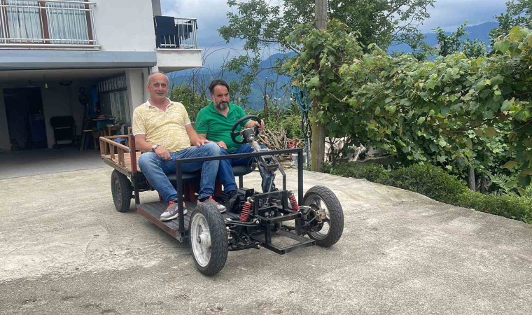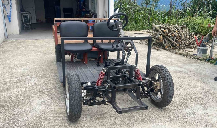 Rizeli Bayram Kar, köyde daha rahat ve masrafsız bir şekilde çay taşıyabilmek için elektrikli araç yaptı.