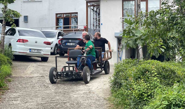 Köyünde çay taşımayı tamamen masrafsız hale getirdiğini belirten Bayram Kar, “Köylerde çayları taşımak cidden çok büyük bir problem. Yollar çok eğimli ve kötü. Araçlar çok maliyetli. Dolayısıyla elimde olan malzemeleri değerlendirerek yük taşımak için bir araç yaptım. Elimde malzeme vardı. Yeteneğimde var. Böyle bir araba tasarlamayı düşündüm ve yaptım. Çok da güzel oldu. Yüzde 70 eğimli rampalardan 300-400 kiloluk bir yükle rahat bir şekilde çıkabiliyorum. Bizim aşağıda bir yolumuz var. O yol çok eğimli. Yorgun olduğunda çok zorlanıyorsun. Bu arabayla çok kolay oluyor. İndim eşimle beraber çayımı topladım. Yükümü koydum arkasına çıktım yukarıya kadar. Bu araç elektrikli. Bu sayede benzin derdi olmuyor. Fişe takıp iki saatte şarj edebiliyorsunuz. 5 kilowattlık bir motora sahip. Gayet de güzel oldu. Tamamen masrafsız olsun diyorsak. Evin üzerine iki tane güneş enerji sistemi koyabiliriz. En güzel özelliği masrafsız olması. Motor bakımı yok. Köyümüzde yaşlılar da var. Bu aracı kullanmak çok basit. Herkes kullanabilir. 70 yaşındaki biri bile çok rahatlıkla kullanabilir. Şu anda baya bir talep var. Şu anda liste yapma durumu var. Allah’ın izniyle daha güçlüsünü yapacağız. İsmini ’Fafatuka’ koyduk. Karadeniz yöresine ait bir kelebek ismidir” ifadelerini kullandı.