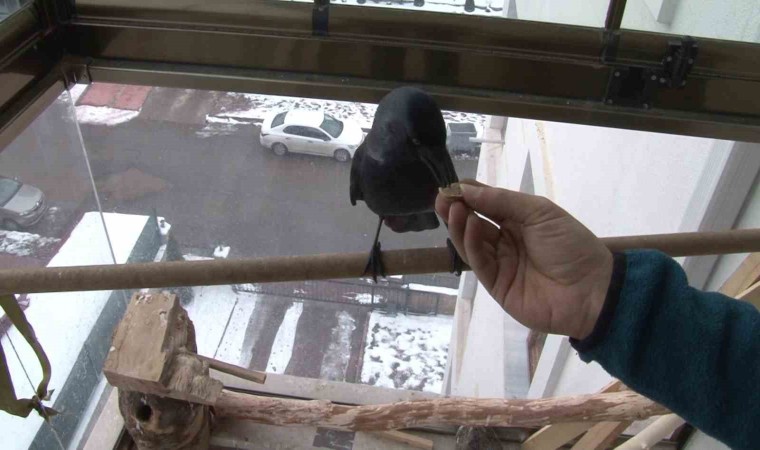 Yılmaz, kargayı bulduğunda uçamadığını ifade ederek, “Evimin çevresinde sürekli görüyordum ve hayranlıkla izliyordum. Çalışma arkadaşlarıma da bu durumdan bahsettim. Eğer denk gelirse karga beslemek istediğimi söyledim. Bana ‘Onu besleyemezsiniz. Bu yabani bir hayvan ve evcilleşmez’ dediler. Ümidimi kestim ama bir ay sonra evimin çatısından yavru bir karga önüme düştü. 2 haftalıktı. Uçamıyordu, hatta yürümekte bile zorlanıyordu. Kanadı kırılmıştı. Tedavi etmek için aldık. Tedavi ettik besledik ve bize çok alıştı. Bizi bırakmadı” dedi.