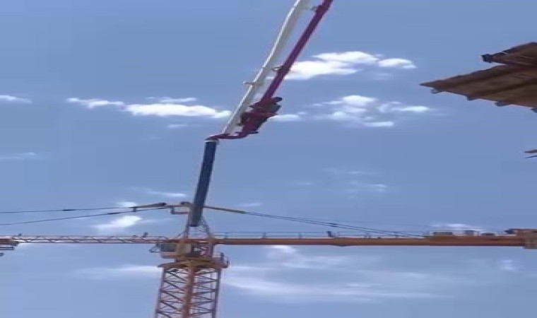 Elazığ’da inşaat alanında çalışan bir kişi, metrelerce yükseklikten beton mikserin hortumuna tutunarak indi. Yüreklerin ağza geldiği o anlar cep telefonu ile kaydedildi.
