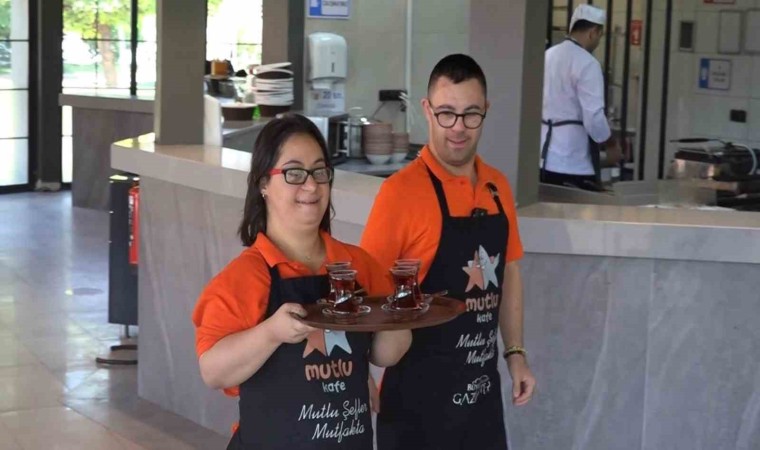 Gaziantep’te Down sendromlu 9 genç çalışanın hizmet verdiği Mutlu Kafe, ekibi ve ismiyle özdeşleşen duyguları oluşturan güler yüzlü servisiyle gelen misafirleri mutlu ediyor.