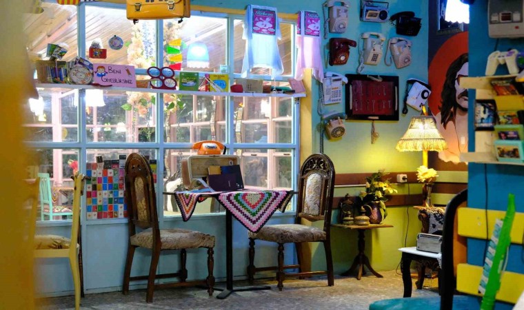 Kafeye gelen ziyaretçiler evlerindeki antika eşyaları hediye ediyor