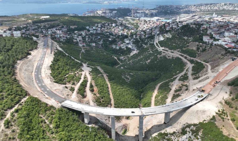 Dilovası ilçe merkezi ile köylerden Devlet Hastanesi’ne ulaşımı kolaylaştıracak olan viyadük köprüde 60 kirişin montajı tamamlandı.