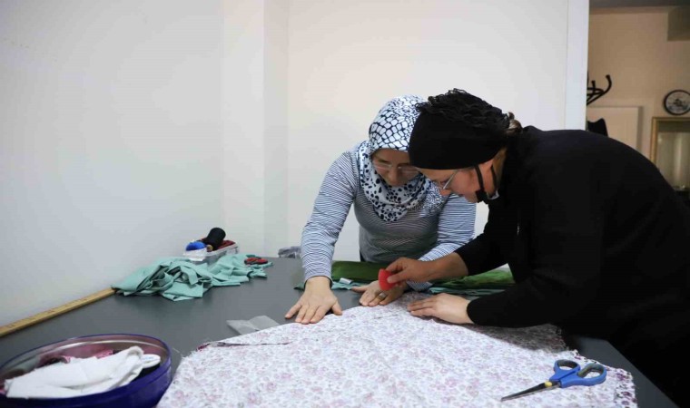 Turhal Belediyesi Hanımeli Kültür ve Sanat Merkezlerinde kadınlar kendilerine katkı sağlarken ev bütçesine de katkı sağlıyor.