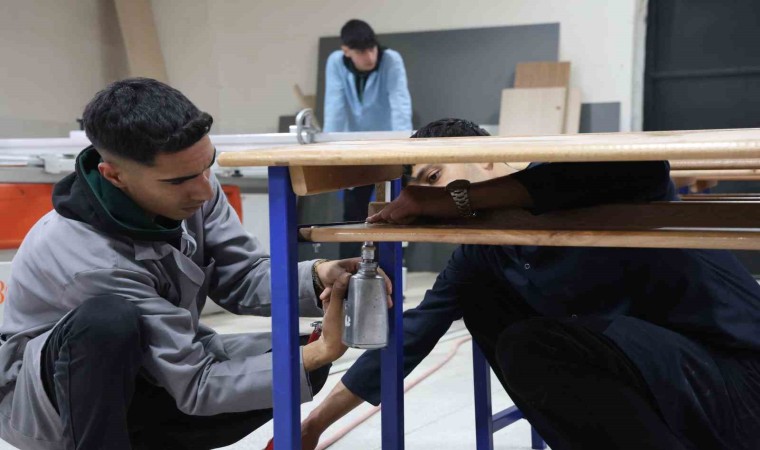 Okullara ve kurumlara mobilya yaptıklarını dile getiren öğrencilerden Fırat Biçer ise “Burada döner sermaye çerçevesinde çalışıyoruz. Aylık ortalama 7 bin lira alıyoruz. Hem okul harçlığımız çıkıyor hem de ailelerimize katkıda bulunuyoruz. Burası sürekli çalıştığımız için adeta bir fabrika gibi” ifadelerini kullandı.