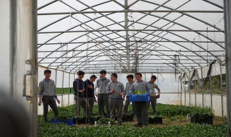 Öğrenciler, okulun bahçesinde kurulan seraya yılın belli dönemlerinde sebze ekiyorlar. Hasat dönemi gelince de ektikleri sebze, meyveleri toplayarak dalından tüketiyorlar. Serada sebze, meyve yetiştiren öğrencilerin mahsulleri okulun yemekhanesinde pişirilerek, diğer öğrencilerin de toplanan sebzelerden tüketmesi sağlanıyor. Hasat edilen sebze ve meyveler, okulda öğrenim gören tüm öğrencilerin öğlen yemeğinde sofralarında yer alıyor. Öğretmenleri gözetiminde serada ekim, bakım, biçim yaparak çalışan öğrenciler, işlerini hem severek yapıyorlar, hem de kendi el emekleriyle ortaya ürün çıkarmanın mutluluklarını yaşıyorlar.