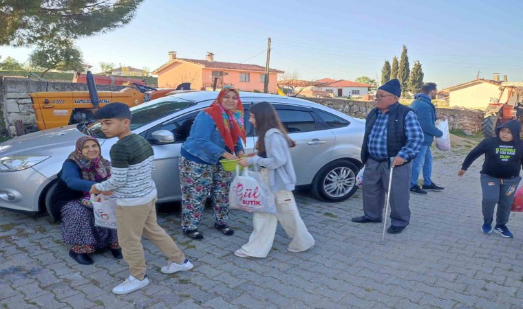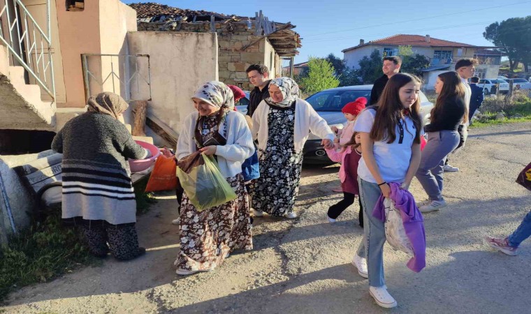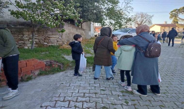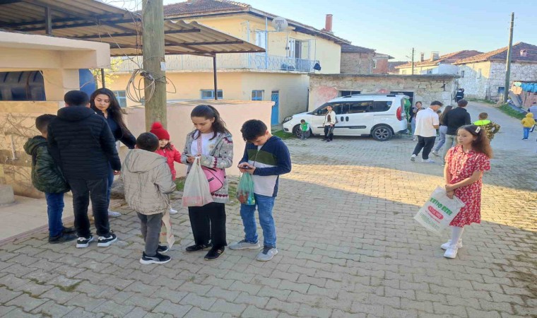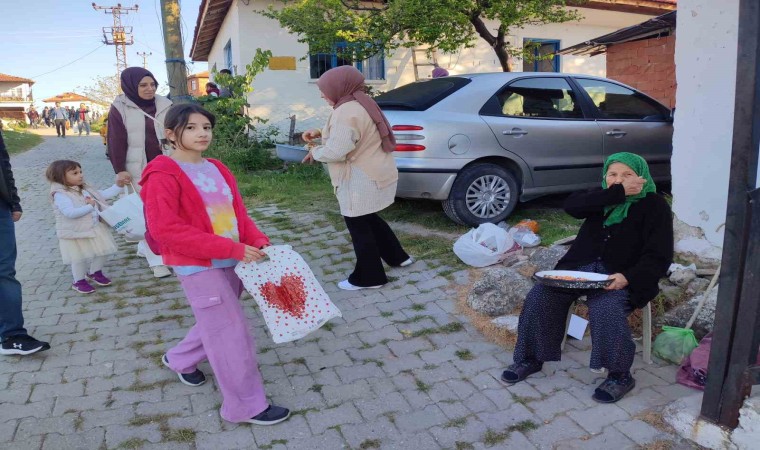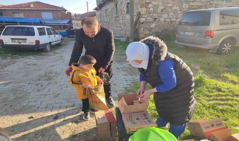 Manisa’nın Gördes ilçesine bağlı Kuşluk Mahallesi’nde genç yaşlı demeden vatandaşlar bayram şekeri toplama geleneğini yaşatıyor.
