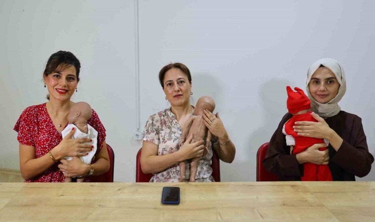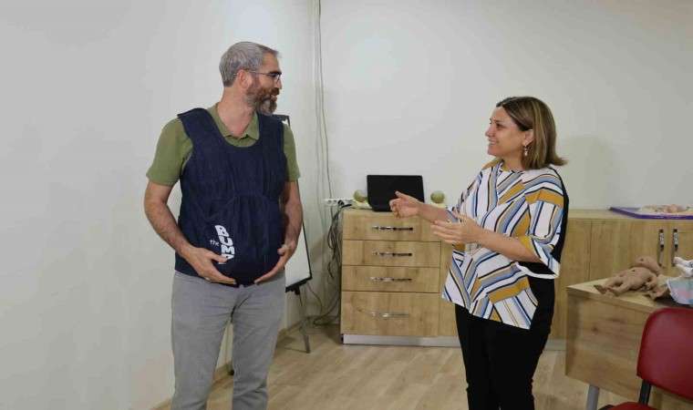Anne adaylarına eğitimlere çift olarak katılmalarını tavsiye ettiklerini anlatan Ebe Şeker, "Böylelikle daha sağlıklı bir süreç geçirmiş oluyorlar. Biz burada o başlangıcı sağlıklı bir şekilde geçirmelerini sağlıyoruz. Eğitime katılan babalara da gebelik sürecinde eşinin yaşadığı zorlukları bir nebze de olsun hissetmeleri için kum torbasından oluşan kıyafeti giydiriyoruz. Ayakkabılarını bağlamalarını istiyoruz. Babalara ayrıca doğum sürecinde ne yapmaları gerektiğini anlatıyoruz" ifadelerini kullandı.