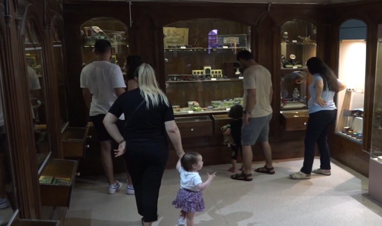 Farklı tarihlere ait yaklaşık yüzlerce çeşit oyuncağın sergilendiği Gaziantep Oyun ve Oyuncak Müzesi çocukları ağırlamaya devam ederken, çocuklar geçmişten günümüze oyuncakları ve maketleri büyük bir heyecan ve mutlulukla inceliyor.