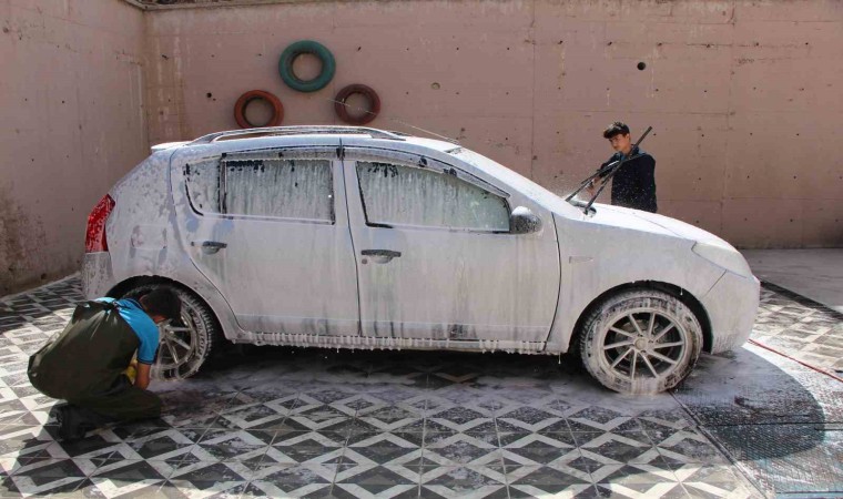Amasya’da bir okulun kütüphanesine kitap getirerek destekte bulunanların araçları ücretsiz yıkanıp temizleniyor.