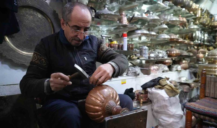 Gaziantep’te 44 yıldır bakır işleyen 55 yaşındaki Kamil Şingin, el emeğiyle yaptığı sürahileri 40 bin TL’ye satıyor.