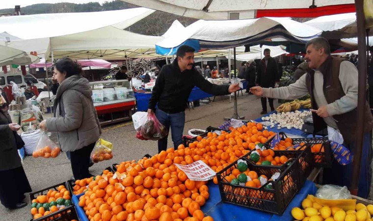Bolu’da kurulan halk pazarında bir esnaf, mandalina ve portakal sattığı tezgahına, "Takdir belgesi getirene vitamin bedava" yazısını astı. Esnaf, belgesiyle gelen öğrencilere ücretsiz meyve verdi.