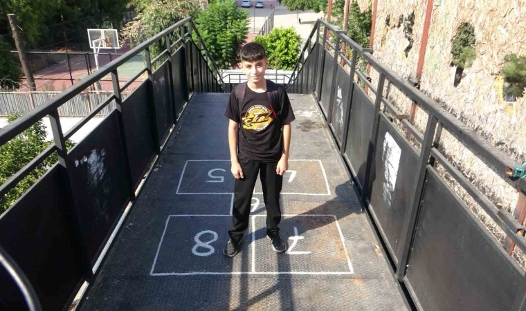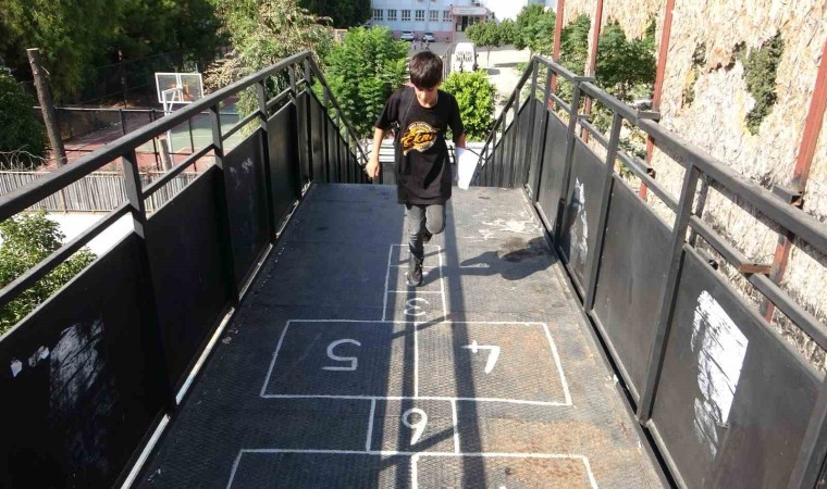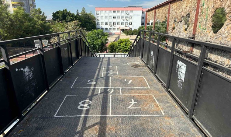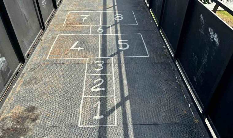 Adana’da bir üst geçide çizilen ’seksek çizgisi’ çocukları mutlu ederken, bu çizgi yaşlıları da çocukluğuna götürdü.