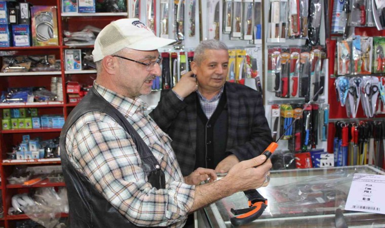 Aslen bıçakçıların merkezi olan Denizli Yatağanlı olan Arzu, Hakkı Karakaya çifti, 12 yıldır Aydın’da bıçakçılık yapıyor. Baba mesleği olan bıçakçılığı devam ettirdiklerini ifade eden Arzu Karakaya, sezon hazırlığı yapmak isteyen üreticilerin yapacakları işe ve ağaç adedine göre testere önerilerinde bulunduklarını ifade ederek “Budama sezonunun erken başlaması sebebiyle bizde de testere bileme ve satışlarında hareketlilik başladı. Zeytinler azdı. Hasat az olduğu için. O yüzden budamaya da erken başlamak zorunda kaldı üreticiler. Bununla beraber budama sezonu hazırlıklarına başladılar. Biz de bu sene testere bileme 50 TL olarak yapıyoruz. Tabi testereyi bilemek de önemli. Elimizle değil makineyle yapıyoruz. 3 işlemden geçiyor. Bunun da yapan kişinin usta olması önemlidir. Testerelerimiz ise 100 liradan başlıyor. Tahta saplılarımızı daha az işi olanlara öneriyoruz. Diğerlerini de daha çok işi olan, bu işi ticaret olarak yapan kişilere öneriyoruz. Onlar daha kalitelilerini alıyorlar. Orta ve kalın diş olarak kullanıyorlar. Kalın diş testerelerimizi kalın dallarda daha rahat kullanıyorlar. İnce dalların zarar görmemesi için ise ince diş testereyi tercih ediyorlar. Yetişemedikleri yüksek yerler için de ayrıca sırık testereleri tercih ediliyor. Ucuna sırığı takıp daha rahat budama yapabiliyorlar. Testerede fiyat aralığımız ise 100 TL’den başlıyor 350 TL’ye kadar çıkabiliyor” dedi.