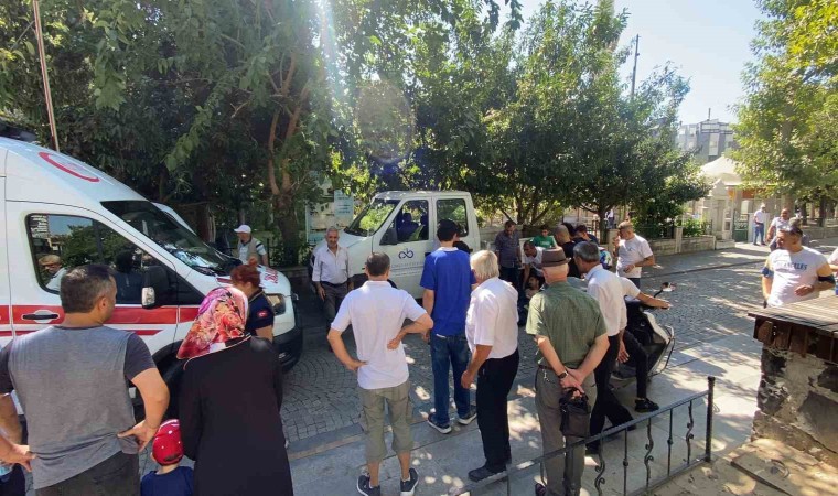 Tekirdağ Çorlu’da cami avlusunda budamak için çıkığı ağaçta dengesini kaybederek düşen belediye işçisinin bacağına demir çubuk saplandı.