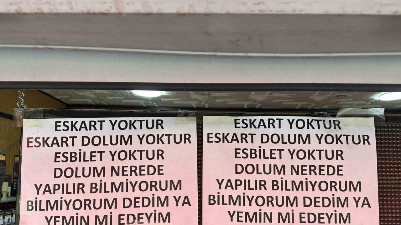 ESKİŞEHİR’DE İŞLEK BİR CADDEDE BÜFE İŞLETEN ESNAF, VATANDAŞLARIN SIKÇA ULAŞIM KARTI SORMASINDAN BUNALINCA, ÇAREYİ İŞLETMESİNİN CAMINA ASTIĞI SİTEM DOLU YAZI İLE ARADI AMA ÇÖZÜM OLMADI.