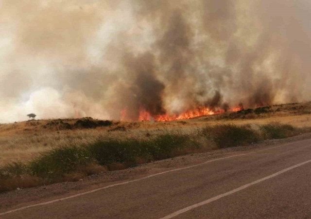 GAZİANTEP’TE BUĞDAY EKİLİ TARLADA ÇIKAN YANGIN TARLAYI KÜLE ÇEVİRDİ.