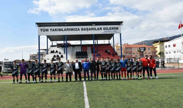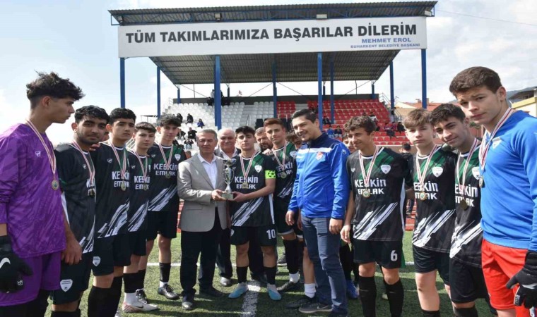 Nazilli Bölge Şampiyonası’nda birinci olan Buharkent Belediyespor U16 takımı kupasına kavuşurken, Belediye Başkanı Mehmet Erol, sporcuları tebrik etti.